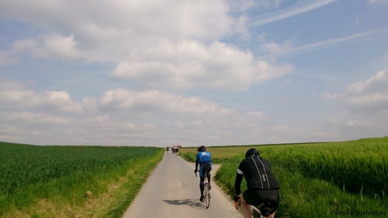 Wir sind überzeugt, dass Friedrich Hebbel bei diesem Spruch nicht unbedingt an die Klassikerausfahrt gedacht hat, aber wir stimmen ihm angesichts unserer Mairunde vollständig zu. In jeglicher Hinsicht. Selbst der Pannenteufel war gut gelaunt: nur eine abgesprungene Kette, nicht mal einen Platten gab es zu vermelden.